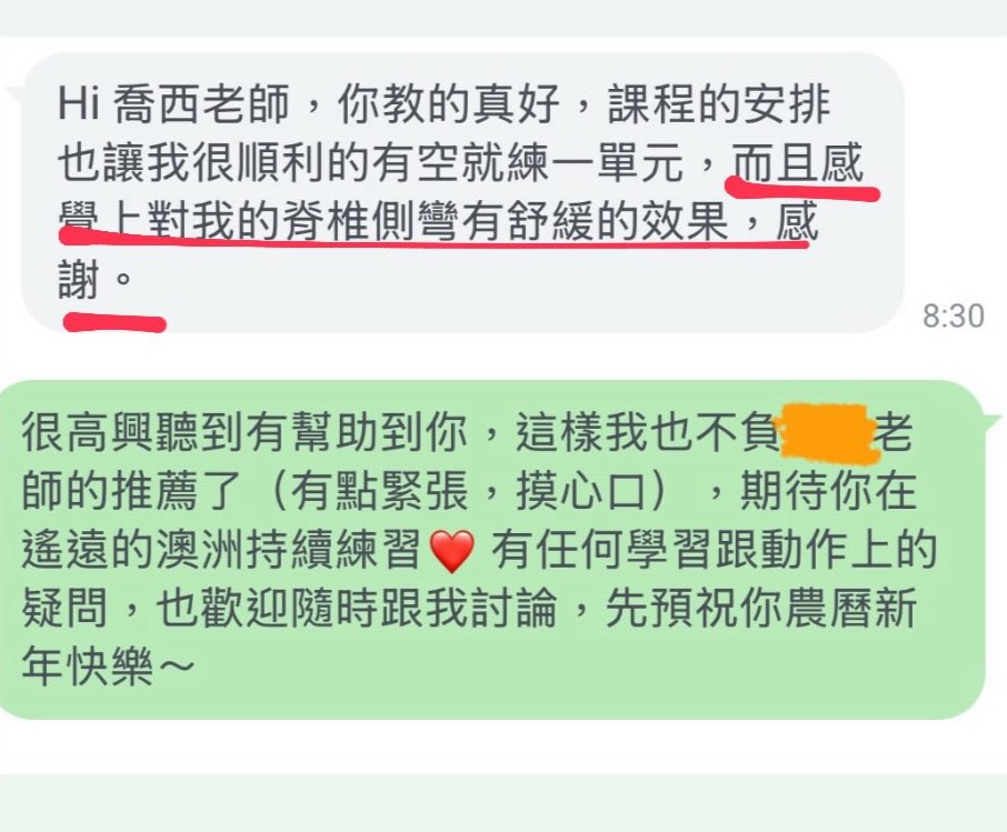 看到這些回饋,我也常常被學生們的認真與轉變感動到,而這些身體上的感受跟變化,都是從他們願意嘗試開始的。